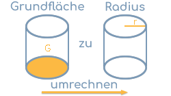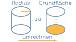 Da die Grundfläche eines Zylinders ein Kreis ist, kann die Formel auch mit dem Radius (r) geschrieben werden: